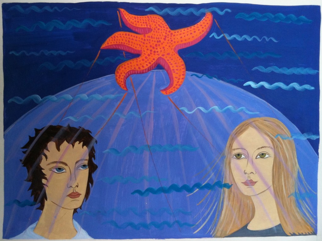 Vers 1972, Nicole Boulanger entame la rédaction d’un récit à destination des adolescents, Les Voyages inventés, parfois intitulé Antonin et Colombine. Ce récit initiatique, qui se base sur des récits conçus pour ses enfants, comptera d’abord quatre parties faisant référence aux quatre éléments (l’artiste est à ce moment-là marquée par la lecture de Gaston Bachelard): L’Eau qui parle, L’Île maigre, La Ville sans cœur et Le Demi-Ciel, que complètera plus tard une partie conclusive, Le Pays d’où tu viens. L’Eau qui parle fera l’objet de la réalisation d’un « livre-cassette », qui sera aussi un vrai projet collectif, amical et familial autour de l’artiste: son compagnon Daniel en concevra la musique, rejoint par d’autres amis musiciens, son fils Olivier en réalisera l’enregistrement, ses enfants, amis comédiens et comédiennes joueront les différents personnages… l’artiste elle-même prêtant sa voix à la narratrice. L’Eau qui parle ira jusqu’à un montage très abouti, mais ne trouvera malheureusement pas de débouchés, le projet commercial de livres-cassettes ayant fait long feu. Il subsiste une série d’illustrations de cette première partie, l’enregistrement mentionné plus haut (en cours de numérisation), ainsi que le texte lui-même, dans sa dernière version retravaillée pour un concours de textes sur la Belgique (!)