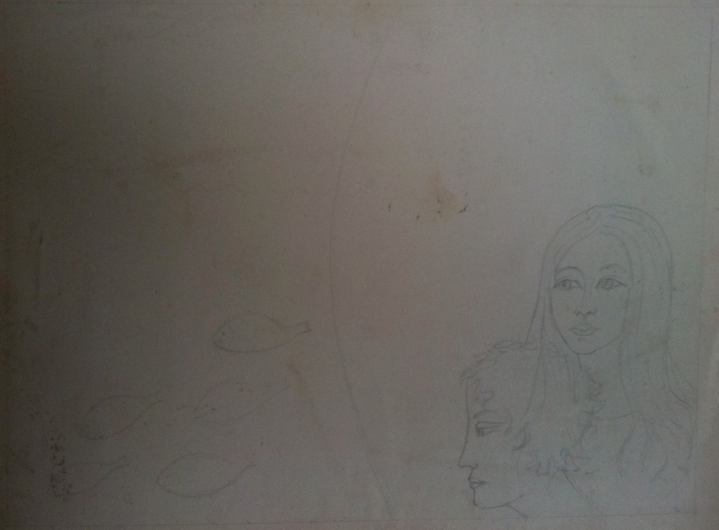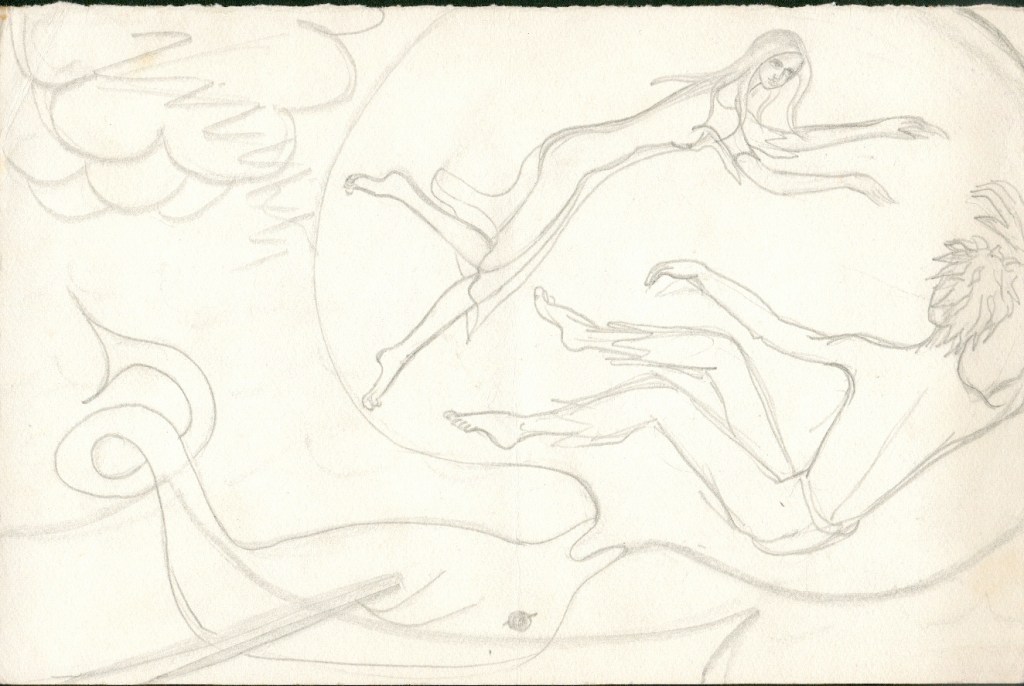 Esquisse pour « l’Arrivée sur l’île » (crayon sur papier)