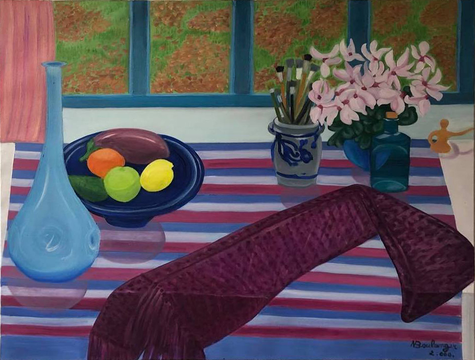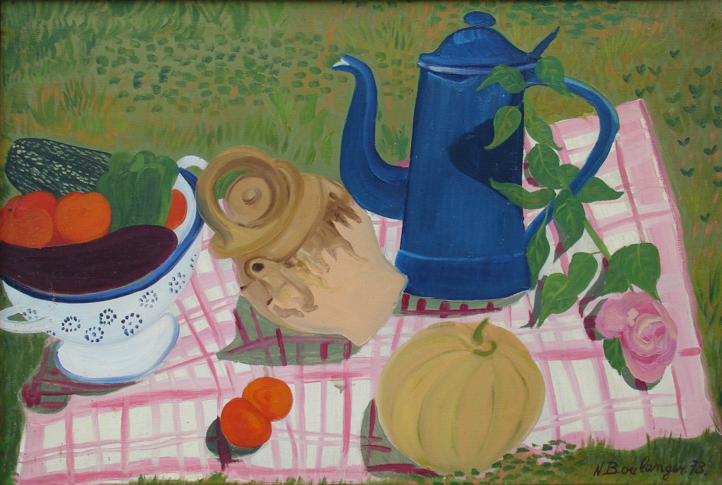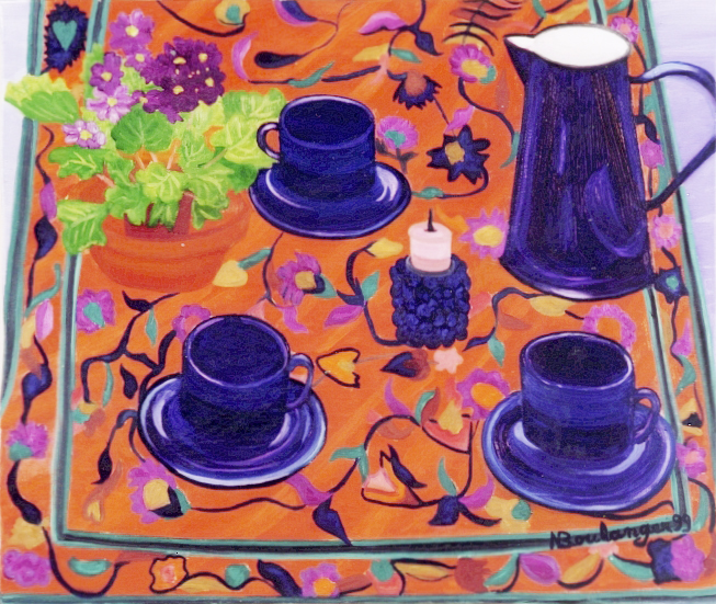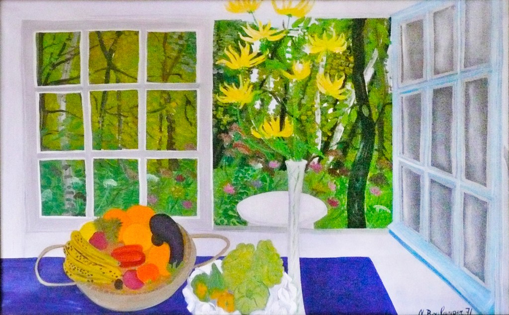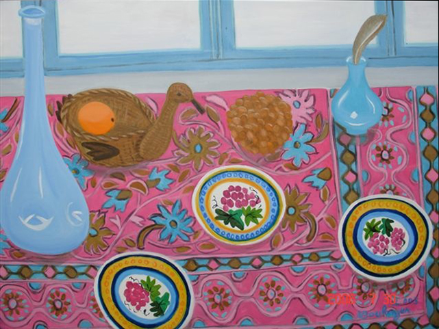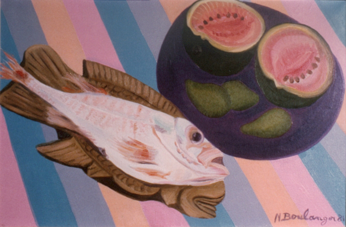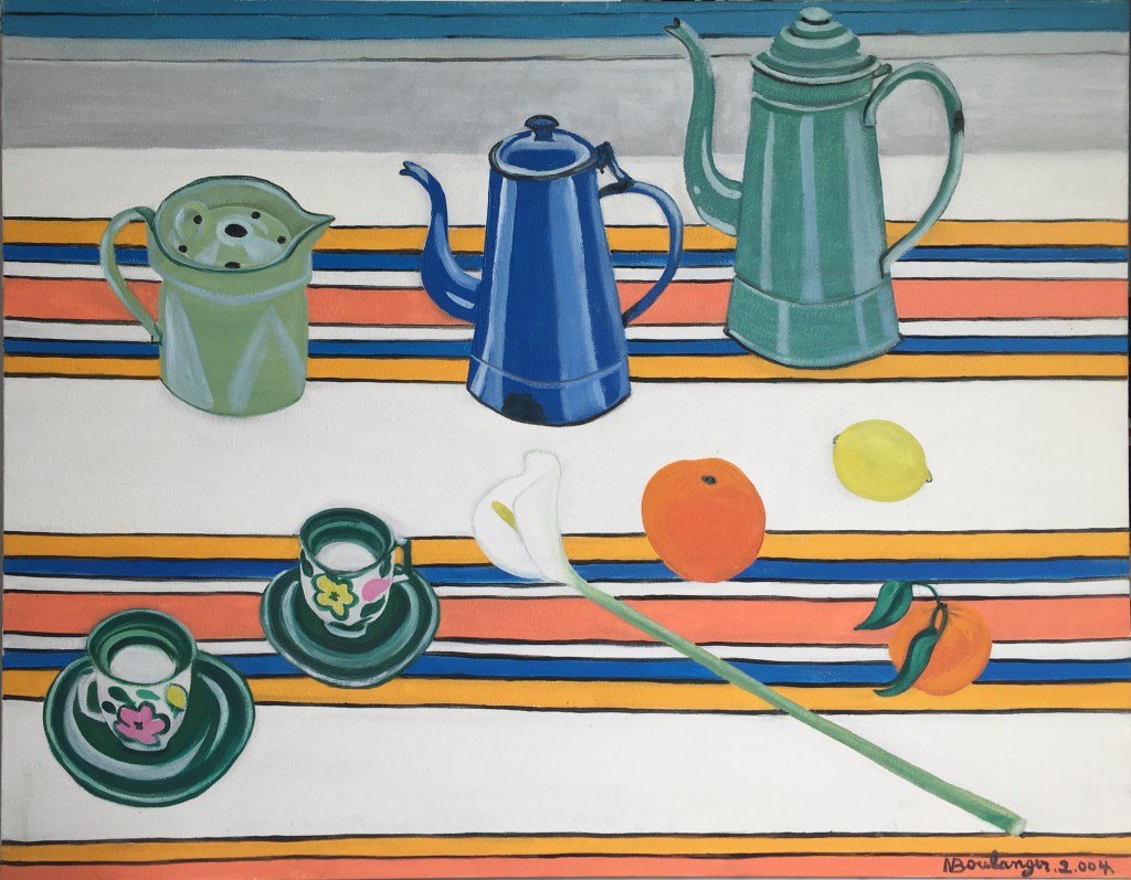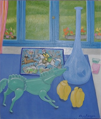 Capucin et Mandarin, 1988Dorade et Pastèque, 1981L’Ange de bronze, 1963 Nature morte, 1973Les Assiettes de Sophie, 1988Les Poires, 2004La Fleur d’acanthe, 1988L’Oiseau aux coings, 2006Les Trois Tasses, 1999 Oiseau et fleurs, 2007Mangues bouddhistes, 2002Canard à l’orange, 2003La Chaise haute, 1988 Le Pot à lait, 1985Hortensia, 1995Bogolan, 1996Fruits de bois, 1999Jardinière aux pensées, 1977Citrouille, 1993Nature morte à la citrouille, 1983La Poupée, 1962Jacinthes bleues et primevères, 1981Pomme et poire, 2004 Vénus et Vierge, 2004Primevères, 2006Deux danseuses, 1988Arum à l’entrée, 2005L’Ange, 1981Verre peint, 2002Indian Ibis, 2005Vases d’artiste, 2003Les oiseaux conversent, 2005En musique, 2004Qui voilà?, vers 2005 Les Coloquintes de Moh, vers 2005Chaleur de la soie, 2003Dîner intime, 2003Voyage intérieur en hiver, vers 2005Dans le sable, vers 2005Téléphone rouge, 2006Sentier africain, 2005Colocynth, 1971Pêle-Mêle, 1957-59Pégase et le chevalier, 2002La Rose et le Panier, vers 1963-65Chorégraphie, 1999Les Pois de senteur, 1985Jouet africain, 1996Les Fers à cheval, 1975 L’Echarpe, 2000Dames-Jeannes, vers 1967Cerises au vinaigre, vers 1967Le Feu, 1969Etagère, 1967Les Cornichons, vers 1962-64 Coloquintes, 1985Déjeuner au jardin, 1975Amas biblique, 1981Happy Birthday, 1992Le temps est bleu, vers 1970