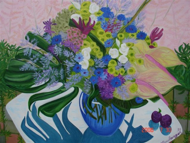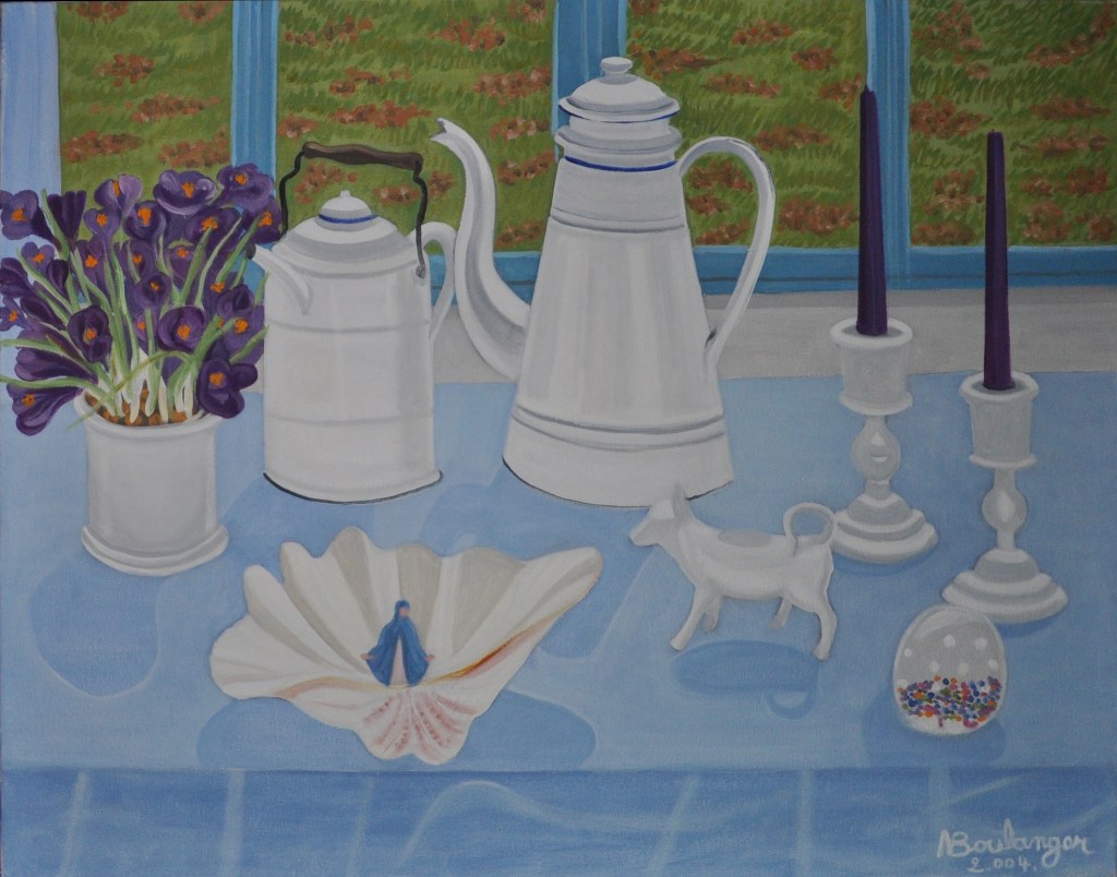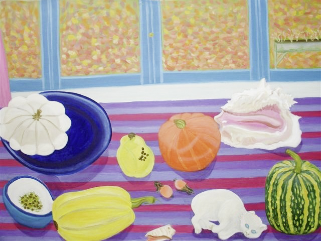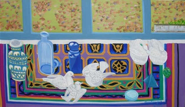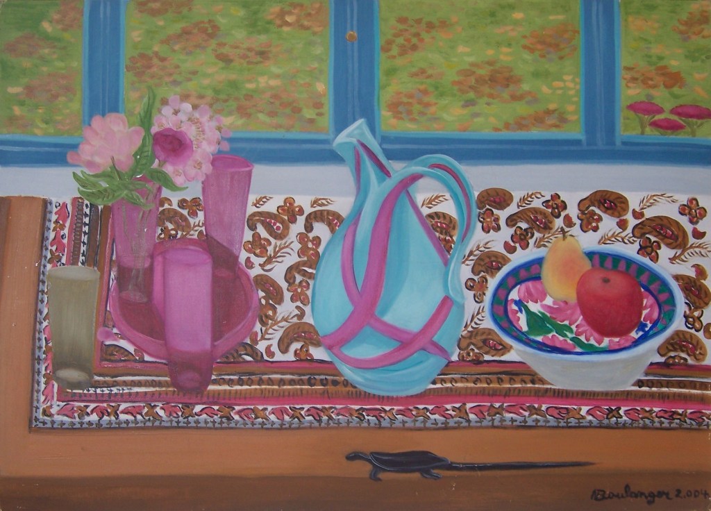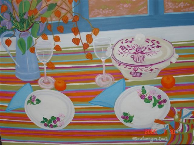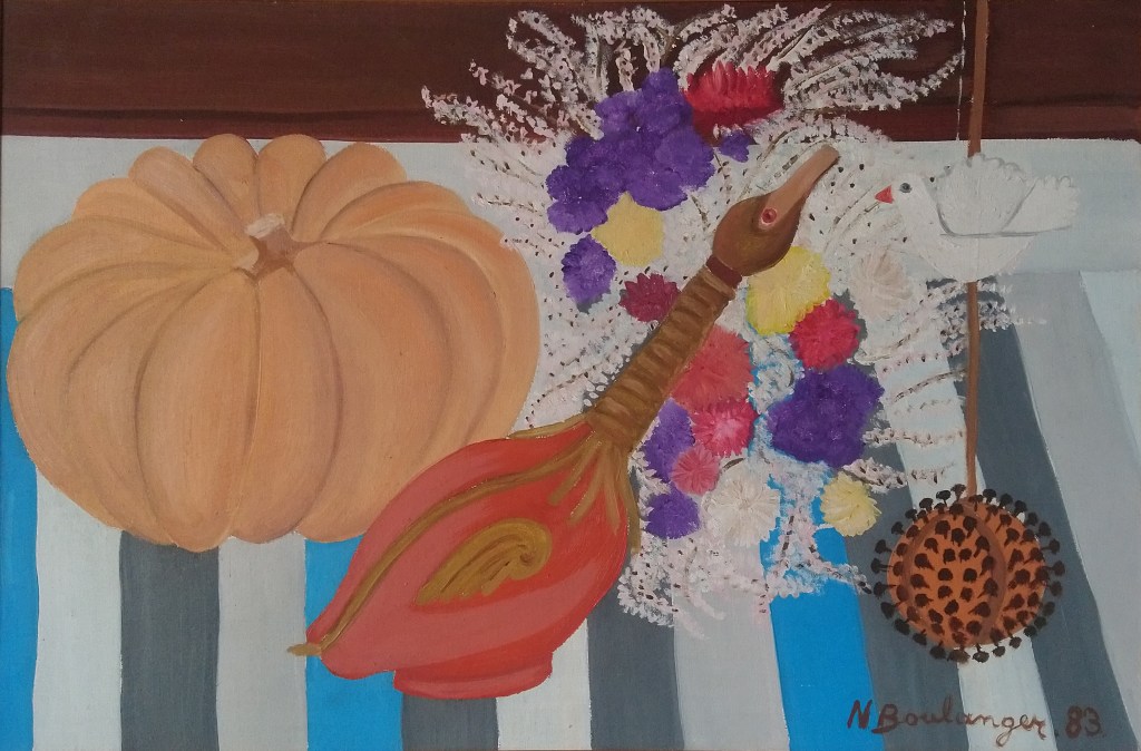 Capucin et Mandarin, 1988Dorade et Pastèque, 1981L’Ange de bronze, 1963 Nature morte, 1973Les Assiettes de Sophie, 1988Les Poires, 2004La Fleur d’acanthe, 1988L’Oiseau aux coings, 2006Les Trois Tasses, 1999 Oiseau et fleurs, 2007Mangues bouddhistes, 2002Canard à l’orange, 2003La Chaise haute, 1988 Le Pot à lait, 1985Hortensia, 1995Bogolan, 1996Fruits de bois, 1999Jardinière aux pensées, 1977Citrouille, 1993Nature morte à la citrouille, 1983La Poupée, 1962Jacinthes bleues et primevères, 1981Pomme et poire, 2004 Vénus et Vierge, 2004Primevères, 2006Deux danseuses, 1988Arum à l’entrée, 2005L’Ange, 1981Verre peint, 2002Indian Ibis, 2005Vases d’artiste, 2003Les oiseaux conversent, 2005En musique, 2004Qui voilà?, vers 2005 Les Coloquintes de Moh, vers 2005Chaleur de la soie, 2003Dîner intime, 2003Voyage intérieur en hiver, vers 2005Dans le sable, vers 2005Téléphone rouge, 2006Sentier africain, 2005Colocynth, 1971Pêle-Mêle, 1957-59Pégase et le chevalier, 2002La Rose et le Panier, vers 1963-65Chorégraphie, 1999Les Pois de senteur, 1985Jouet africain, 1996Les Fers à cheval, 1975 L’Echarpe, 2000Dames-Jeannes, vers 1967Cerises au vinaigre, vers 1967Le Feu, 1969Etagère, 1967Les Cornichons, vers 1962-64 Coloquintes, 1985Déjeuner au jardin, 1975Amas biblique, 1981Happy Birthday, 1992Le temps est bleu, vers 1970