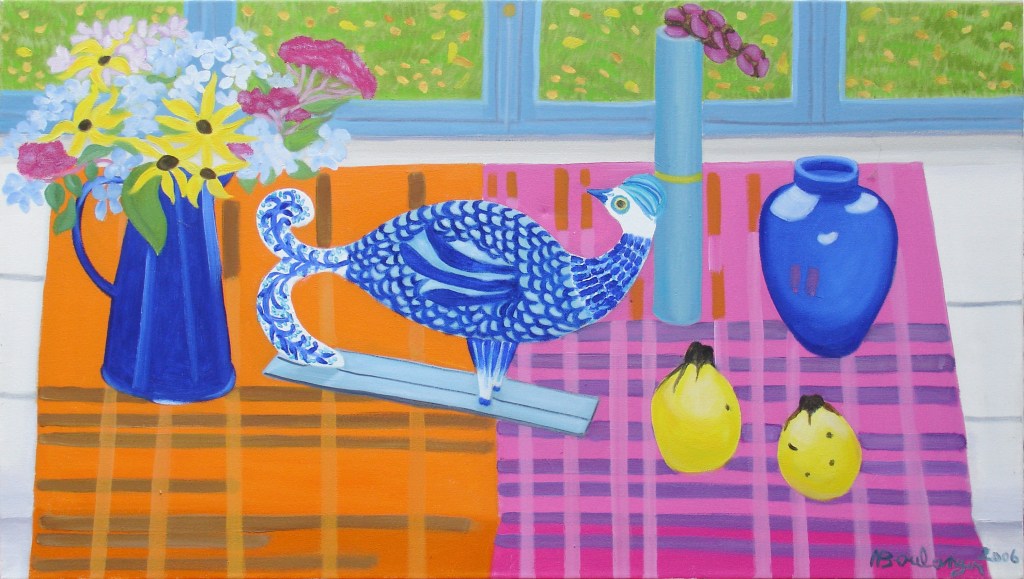 Parfois, le regard de l’artiste se concentre sur quelques objets. Le terme anglais de « Still Life » semble mieux convenir que « nature morte » à ces œuvres qui s’attachent à conférer une hyper-présence aux objets peints. Souvent aussi, ces « natures mortes » sont situées, s’inscrivent dans un cadre (intérieur ou extérieur) qui déborde les limites du tableau, créent une perspective où l’arrière-plan joue autant que l’objet figuré en avant-plan. La remarquable dernière série de tableaux – entre 2002 et 2007 – reprendra de manière systématique le principe d’objets choisis, rassemblés et disposés dans un même cadre – sur la même table, devant la même fenêtre de l’atelier de l’artiste.