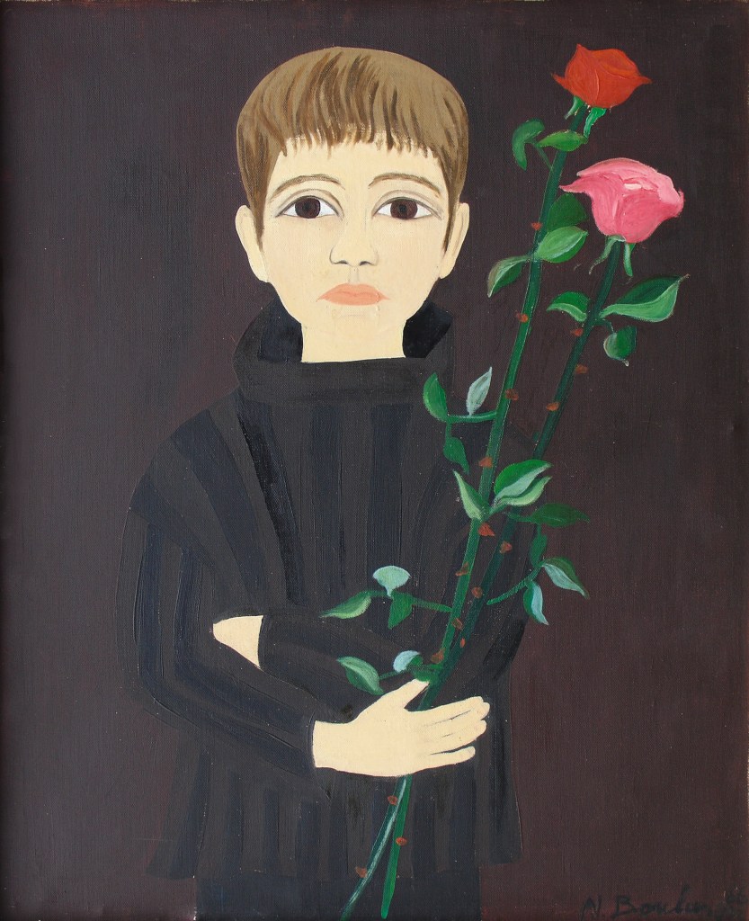 Dès les années 1950, au Canada, l’artiste commence à réaliser des portraits – principalement des portraits d’enfants au début. Elle en produira une quantité impressionnante au fil des années, qui se trouvent aujourd’hui sur plusieurs continents. Hiératiques, archaïques, à la fois figés et vivants, ils s’avèrent souvent d’une ressemblance frappante avec leurs modèles.